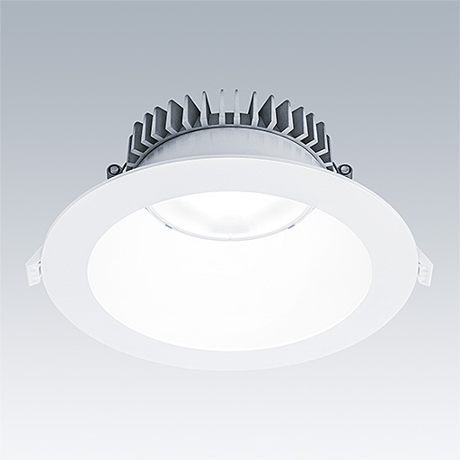 Nízké vestavné LED svítidlo typu downlight. Vhodné pro stropní výřezy Ø190-230 mm pro snadnou dodatečnou montáž nebo rychlou počáteční instalaci. Dálkový LED předřadník Pevný výstup s připojením pomocí zástrčky. Je možné zapojení v okruhu dovnitř - ven. Těleso: plast pro řešení odvodu tepla. Difuzor: polykarbonát, hladký reflektor s povrchovou úpravou bílá se širokým paprskem. Reflektor a rámeček: vysoce kvalitní, vysoce odrazivý polykarbonát. Elektrická Třída ochrany II, IP20. Odpružené upínací prvky vhodné pro tloušťky stropu od 1 do 35 mm. Dodáváno s LED zdroji v barvě 4000K