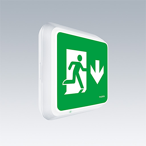 Štíhlé, čtvercový, přisazená, LED svítidlo s bezpečnostní značkou. Svítidlo pro centrální dodávku nouzového osvětlení, s monitorováním obvodu, bez monitorování svítidla. Rozhraní NFC pro údržbu prostřednictvím pera PROset Pen (výrobek: 22170290) nebo aplikace PROset Napájení: 220-240 VAC (± 10%), 50/60 Hz; 176-280 VDC. Těleso: vstřikovaný odlitek polykarbonát, bílá (RAL 9016). Difuzor: opálový polykarbonát, s nalepeným a natištěným piktogramem nouzového východu směrová šipka (dolů) podle ISO 7010. Jednotné podsvícení piktogramu, svítivost > 500 cd/m² v bílé oblasti a 200 cd / m² v průměru v režimu napájení ze sítě (podle DIN 4844), minimálně 2 cd/m² v nouzovém režimu (podle EN 1838). Rozeznávací vzdálenost podle EN 1838: 44m. Elektrická Třída ochrany II, krytí IP65, Odolnost proti nárazu: IK10. Okolní teplota: -30°C do +35°C. Vhodné pro přímou montáž na zeď. Je možné zapojení okruhu dovnitř a ven pro kabely o průřezu až 2,5 mm². Kompatibilní se systémem BESA. certifikát pro potravinářství (pro používání v oblastech s plně zabalenými potravinami). Svítidlo je zapojeno pomocí vedení neobsahujících halogeny a silikon. Svítidlo se symbolem D (pro používání v prostředích, ve kterých lze očekávat hromadění vodivého prachu na svítidle).