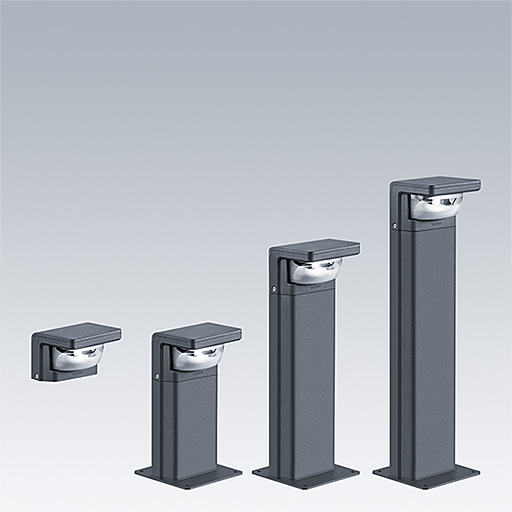 Sloupek o celkové výšce 40, 70 nebo 90cm, montáž pomocí příruby, příruba: 200x200mm. Předřadník je umístěn v hlavě, ale může být umístěn ve sloupu, aby se umožnila údržba. Hlavu sloupku lze nainstalovat tak, aby byla vyrovnána se stěnou (RAW)