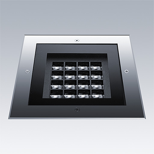 Axyl Opera montage encastré dans le sol, luminaire à LED pour l'éclairage décoratif des façades, avec et distribution faisceau intensif. Classe électrique I.. gradable DALI-2 Driver. IP67, Résistance aux impacts : IK09. Boîtier : aluminium Moulage sous pression, sans peinture texturé acier inoxydable. Température de service de Température ambiante : -20°C à +50°C. Livré avec LED 2 700 K..