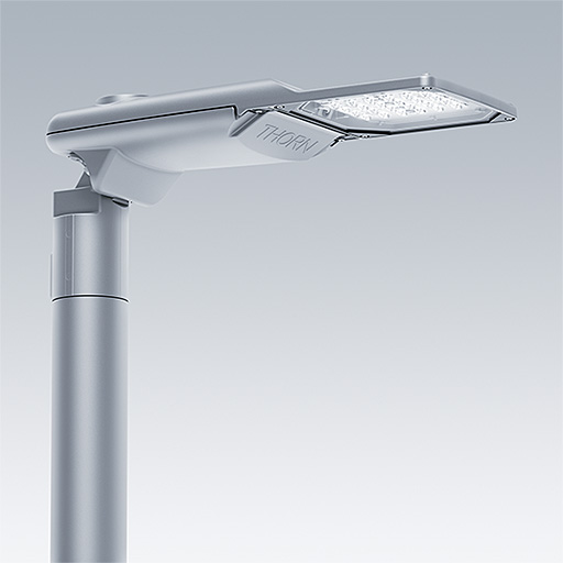 Lanterne d’éclairage routier LED moderne (Small) avec 12 LED alimentées en 350mA avec une optique Route étroite. Programmable Driver. Classe électrique II, IP66, IK09. Corps : aluminium (EN AC-44300) Moulage sous pression, thermopoudré gris clair 150 sablé texturé. Emmanchement : aluminium (EN AC-44300), Moulage sous pression sans peinture. Fermeture : verre ép. 5 mm. Visserie : Acier à ressorts. Livré avec un adaptateur d’emmanchement Ø 60 mm qui convient pour montage top (inclinaison 0°/5°/10°/15°/20°) ou latéral (inclinaison -15°/-10°/-5°/0°/5°/10°/15°). Equipé d'un 50% circuit de réduction de puissance, qui entre en vigueur 3 heures avant et 5 heures après un minuit calculé. Livré avec LED 4 000 K. Protection contre les surtensions : 10 kV en mode commun single pulse et 8 kV en mode commun multipulse; 6 kV en mode différentiel multipulse. Si un système DALI est connecté: 6 kV en mode mode commun et mode différentiel multipulse.