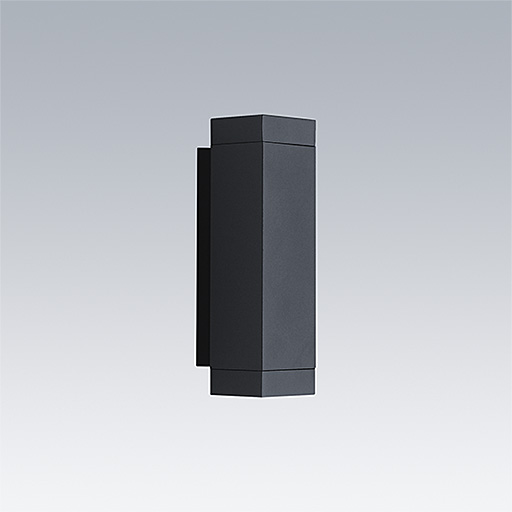 Axyl Glow fixation murale, luminaire architectural à LED pour l'éclairage décoratif des façades, avec 2 échancrures et distribution. Classe électrique III. gradable DALI-2 Déporté Driver. IP65, Résistance aux impacts : IK06. Boîtier : aluminium Moulage sous pression, thermopoudré texturé anthracite. Température de service de Température ambiante : -20°C à +50°C. Livré avec LED 3 000 K.
