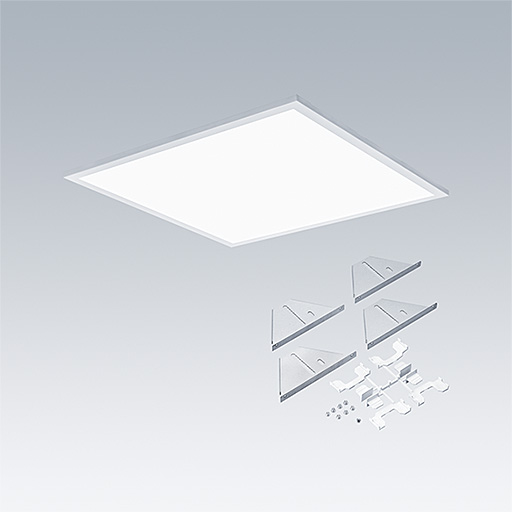 Luminaire LED encastré/plafonnier/suspension. Driver, gradable DALI-2 avec fonction d’éclairage de sécurité de 3 heures et autotest / test adressable DALI. Classe électrique II, IP40_IP20, Résistance aux impacts : IK03. Corps : tôle d'acier, blanc (similaire à RAL9016). Diffuseur : Polycarbonate (PC) anti-UV. Optique microprismatique pour un espacement maximisé. Connexion électrique via borniers à poussoirs, avec repiquage possible.