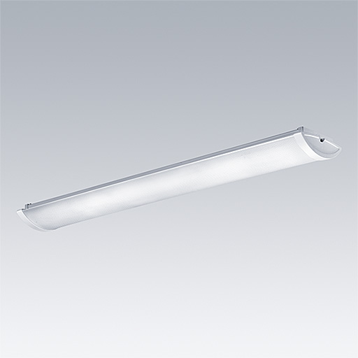 Luminaire LED Monté en plafonnier de faible profondeur. Electronique, non gradable. Classe électrique I, IP44. Corps : acier pré-peint. Embouts : Matière plastique blanc. Diffuseur : acrylique dépoli. Positions de fixation en trou de serrure de Ø 14 mm pour une fixation directe au plafond, au mur ou aux supports. Intervalles de fixation : 1100 mm. Deux entrées de câble Ø 19 mm à l’arrière du corps et opercules dans les embouts. Passe-fil inclus. Connexion électrique via bornier à poussoir 2 x 2,5 mm² 3 P. Câblage traversant. Livré avec LED 3 000 K
